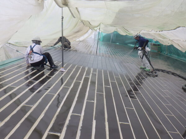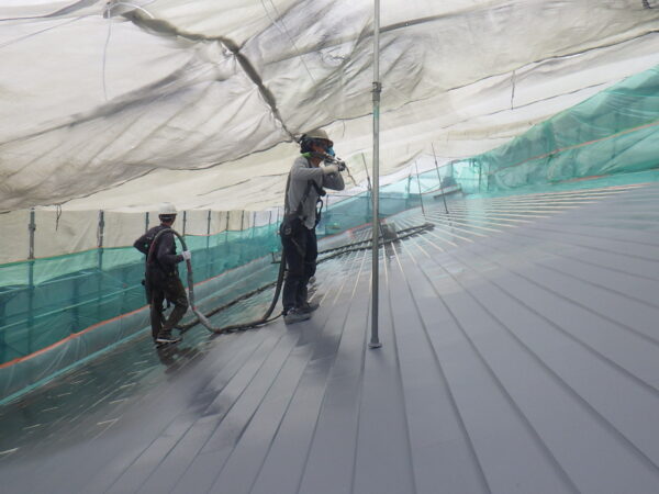 - 球場・スタジアムなどの大面積屋上(曲面や高低差のある構造にも柔軟に対応し、均一な膜厚を確保します)